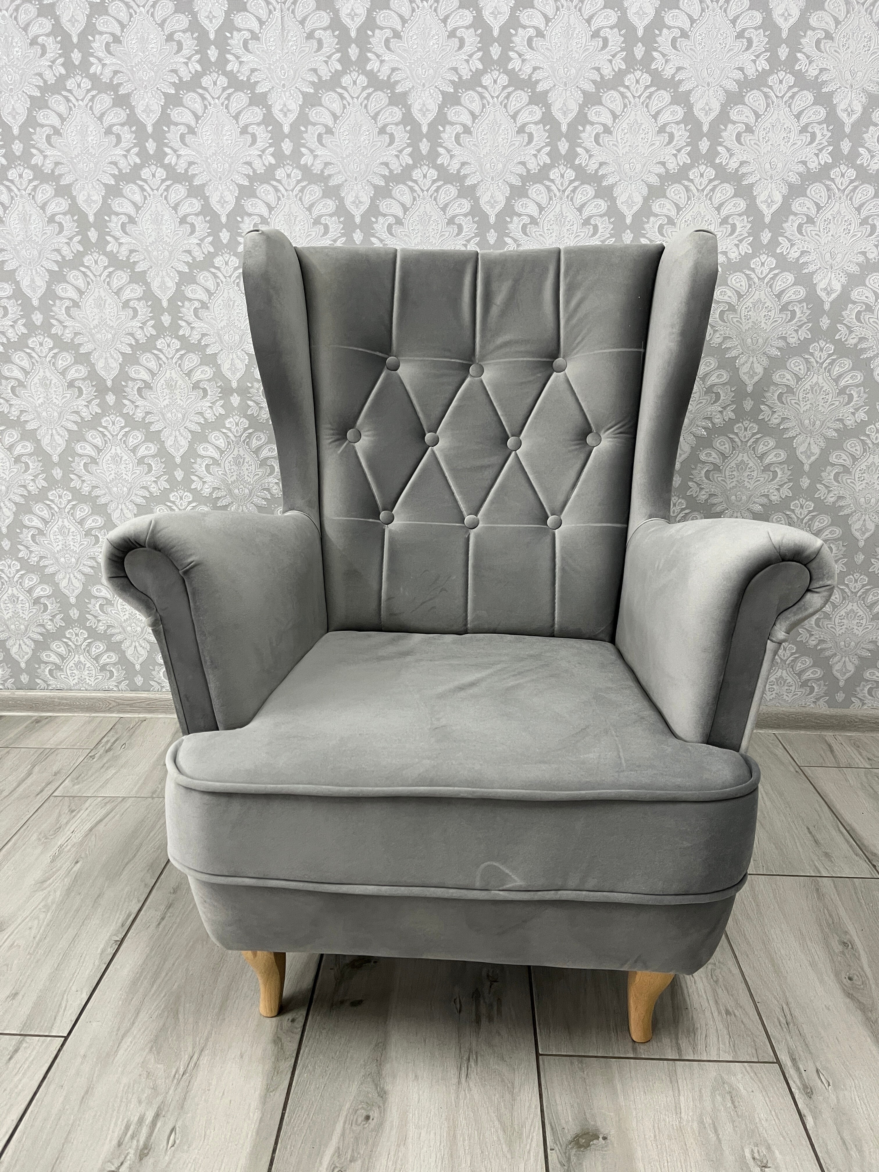 Fotel Uszak II - to wyjątkowy model z rodziny uszaków, charakteryzujący się solidną masą, co sprawia, że jest niezwykle stabilny. Jego urok podkreśla charakterystyczne pikowania oparcia cudowanie zakończenie podłokietników. Kultowe oparcie i klasyczny kształt tradycyjnego uszaka dodają salonowi nuty elegancji. Doskonale komponuje się z aranżacjami wnętrz inspirowanymi nowoczesnym stylem glamour, skandynawskim i nowojorskim, nadając im niepowtarzalny charakter. Dzięki starannej konstrukcji oraz wysokiej jakości materiałom, Fotel Uszak nie tylko zachwyca swoim designem, ale również zapewnia wygodę i funkcjonalność na lata.