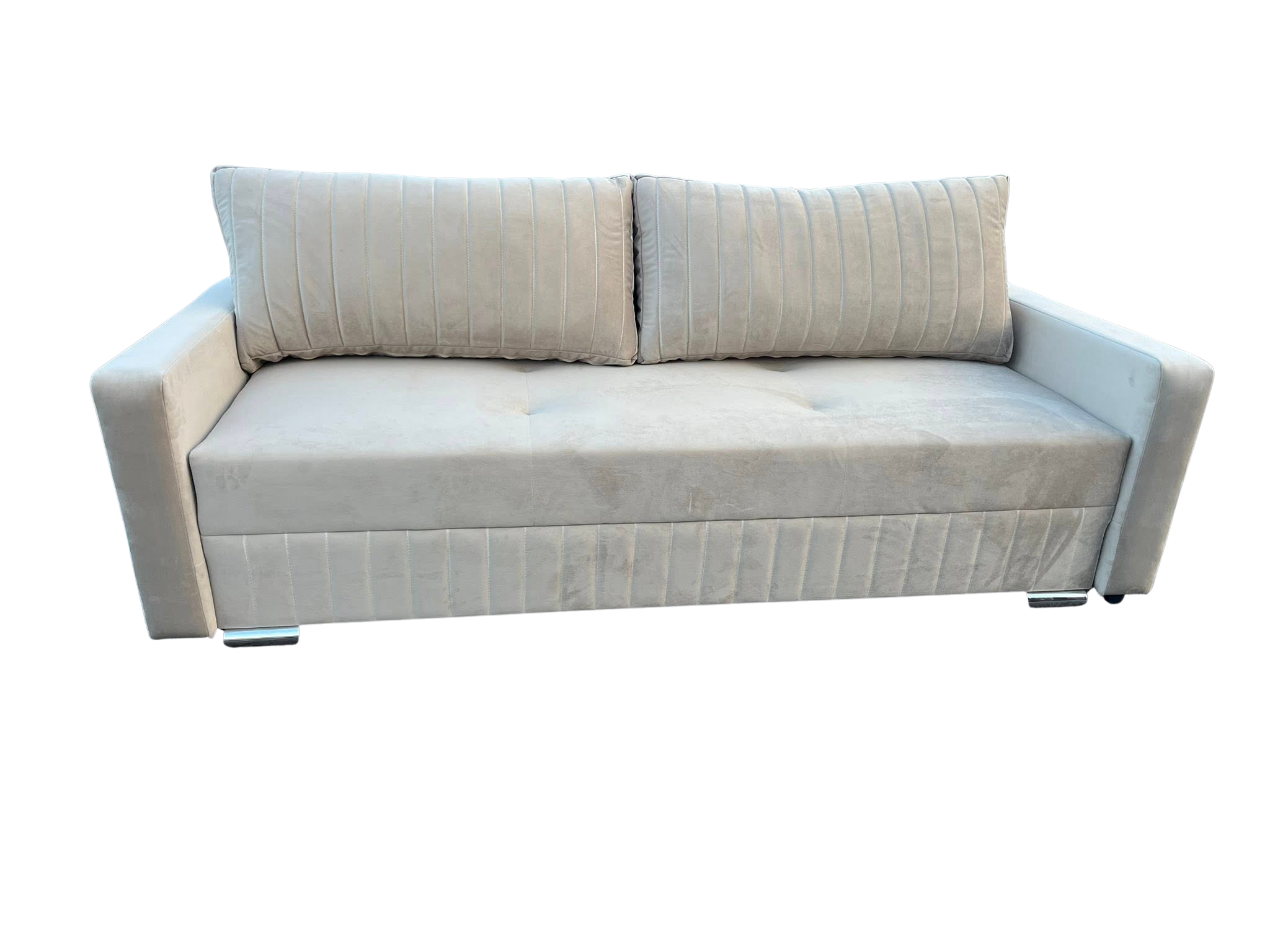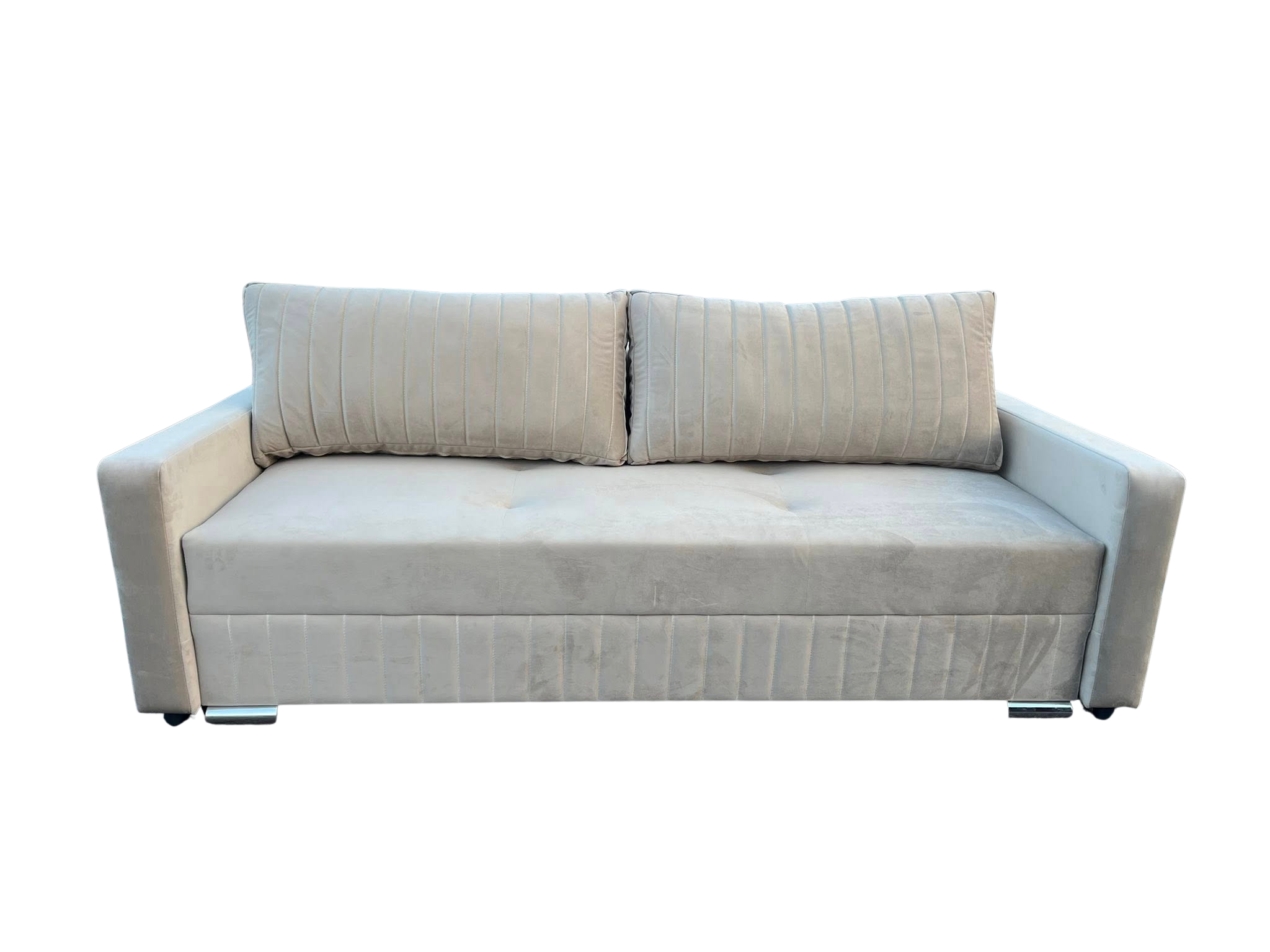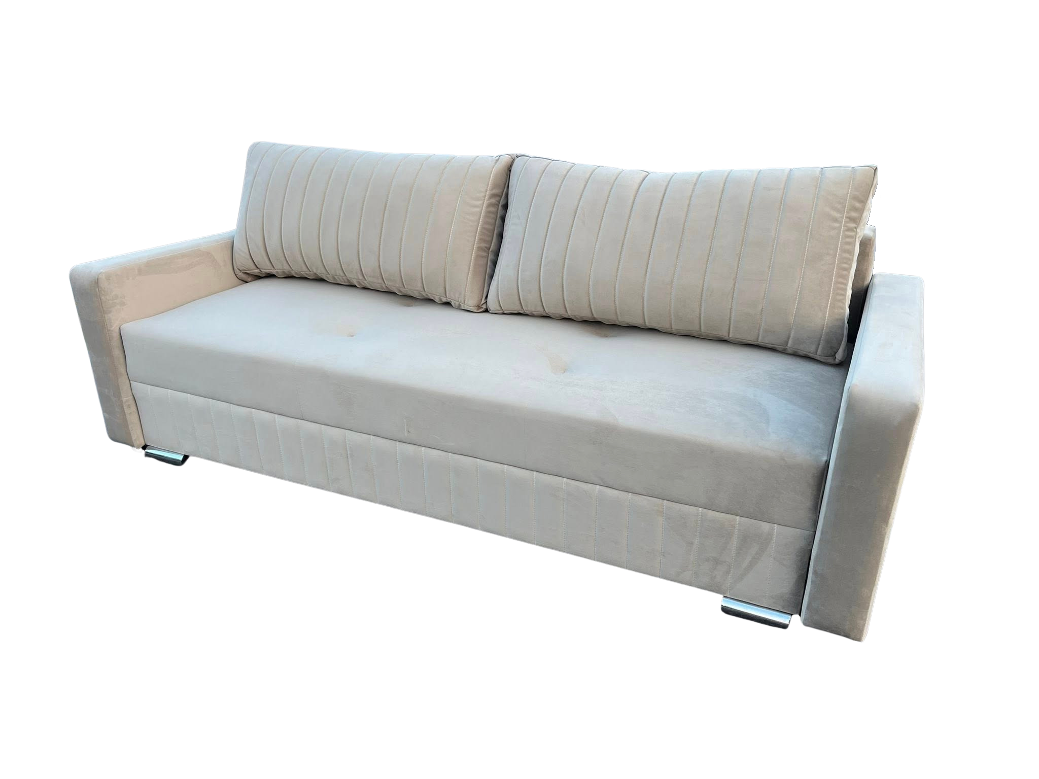 Kanapa Mercelina -to stylowy mebel, łączący nowoczesność z elegancją, idealny do pokoju dziennego lub salonu. Zapewnia maksymalny komfort dzięki licznym udogodnieniom. Charakterystyczne linowe pasy na poduszkach oraz dolna część konstrukcji nadają całości wyjątkowego charakteru. Wypoczynek na tej kanapie wprowadzi do Twojego wnętrza wrażenie luksusu, tworząc elegancki kącik wypoczynkowy, który stanie się wizytówką Twojego domu. Kanapa Marcelnia zachwyca swoim stylowym wyglądem, ożywia otoczenie i wprowadza przytulny klimat, idealny do relaksu i spotkań towarzyskich.