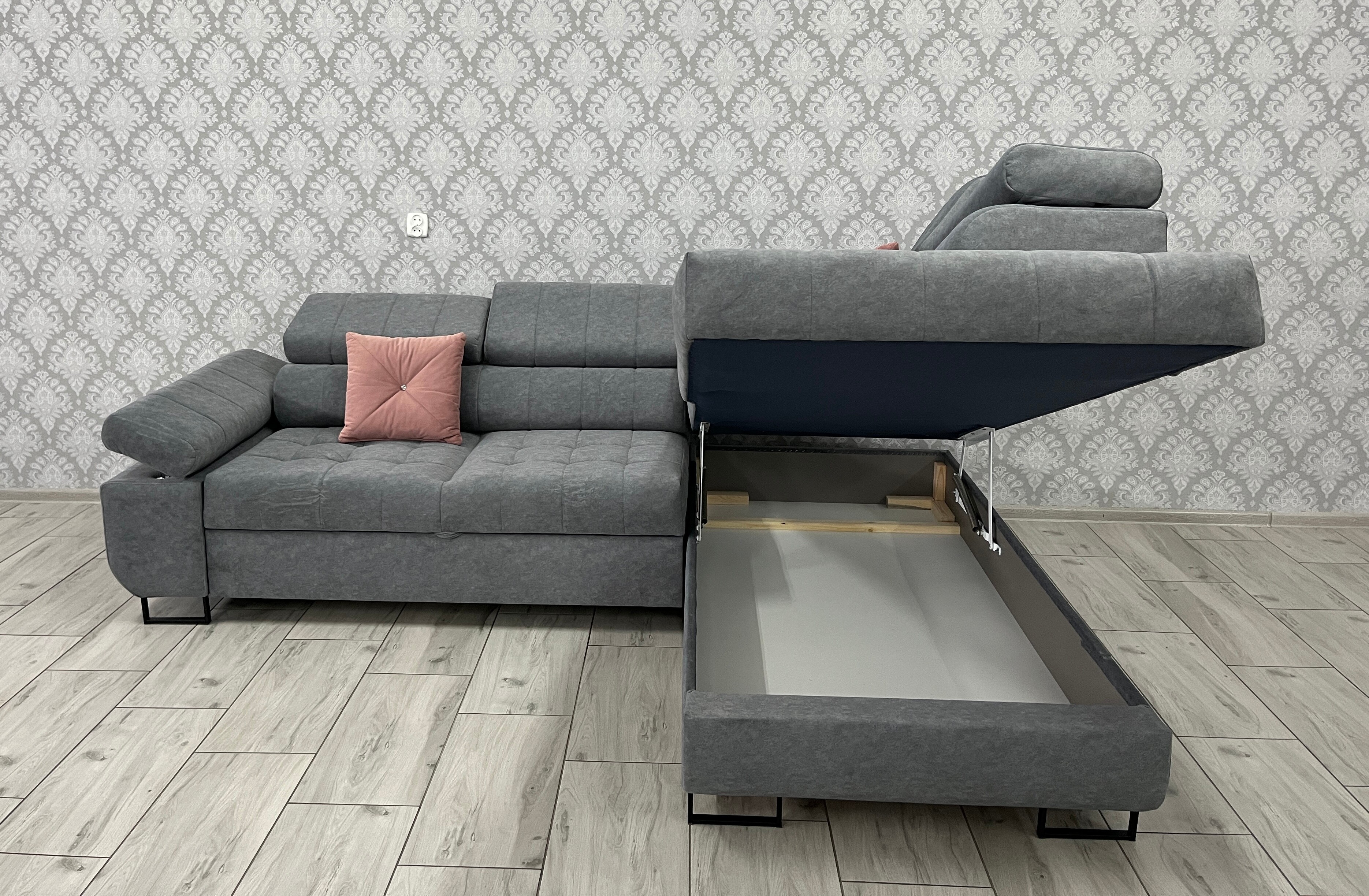 Pod siedziskiem znajdziesz pojemny schowek na komplet pościeli, koce i poduszki.